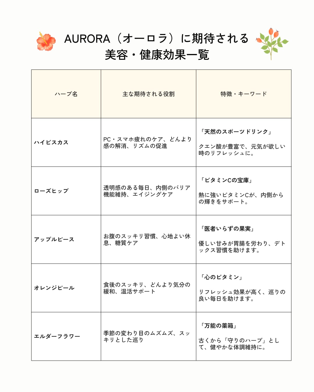 暁の女神「オーロラ」がもたらす、美しいハーブティーのひととき。一日の始まりや、自分を励ましたい瞬間にぴったりなブレンドです。ハイビスカス、ローズヒップ、アップルが融合し、華やかなフルーティーさと優しい酸味を奏でます。新鮮な朝の光に包まれるような、心が解き放たれる瞬間をお楽しみください。