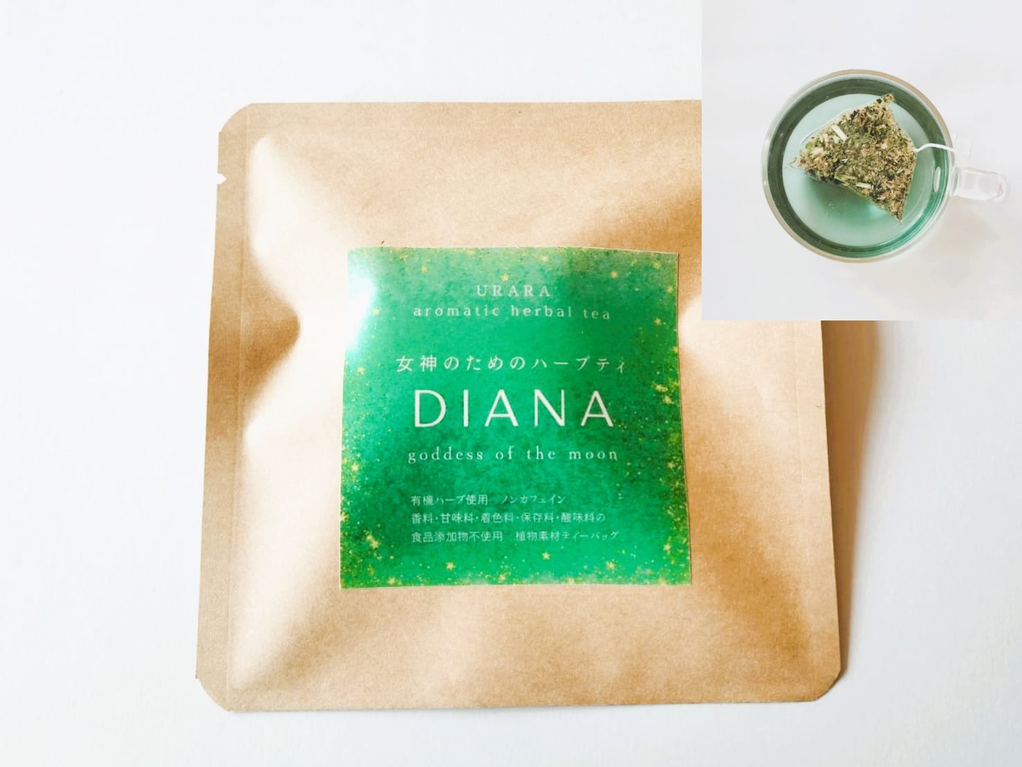 「DIANA(ディアナ)」は、月の女神「ディアナ」をイメージした、緑の神秘的なハーブティー。心を穏やかにするバタフライピーと、リラックスのラベンダー、カモミールとスペアミントの調和で深いリラックスと安らぎをもたらします。月明かりに包まれたような静かなひとときと、自分自身を癒す特別な時間を過ごましょう。