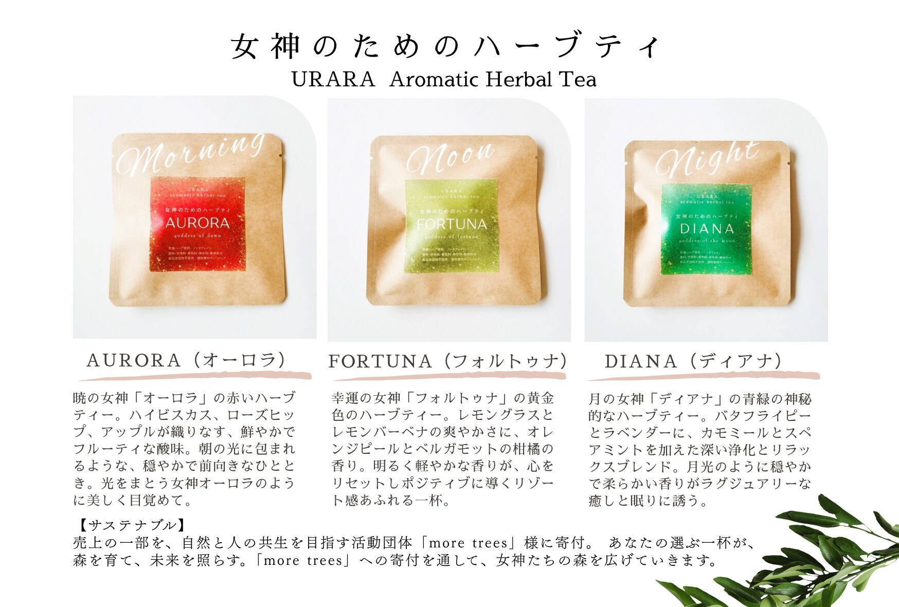 ■ あなたの選ぶ一杯が、森を育て、未来を照らします。「more trees」への寄付を通じて、女神たちの森を広げていきます。