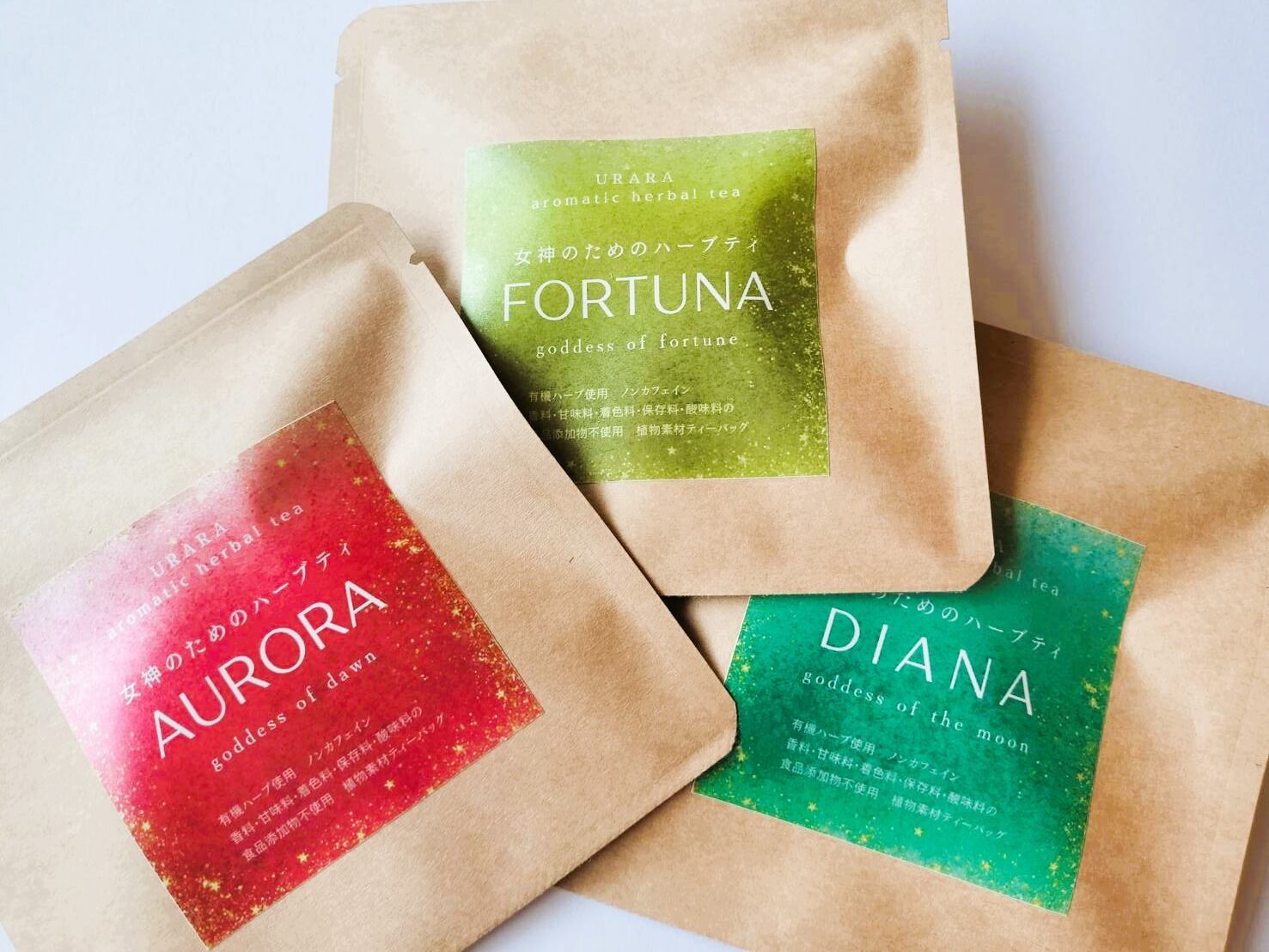 URARAの 「女神のためのハーブティ」体験セット (1包入り3種)と一緒に、