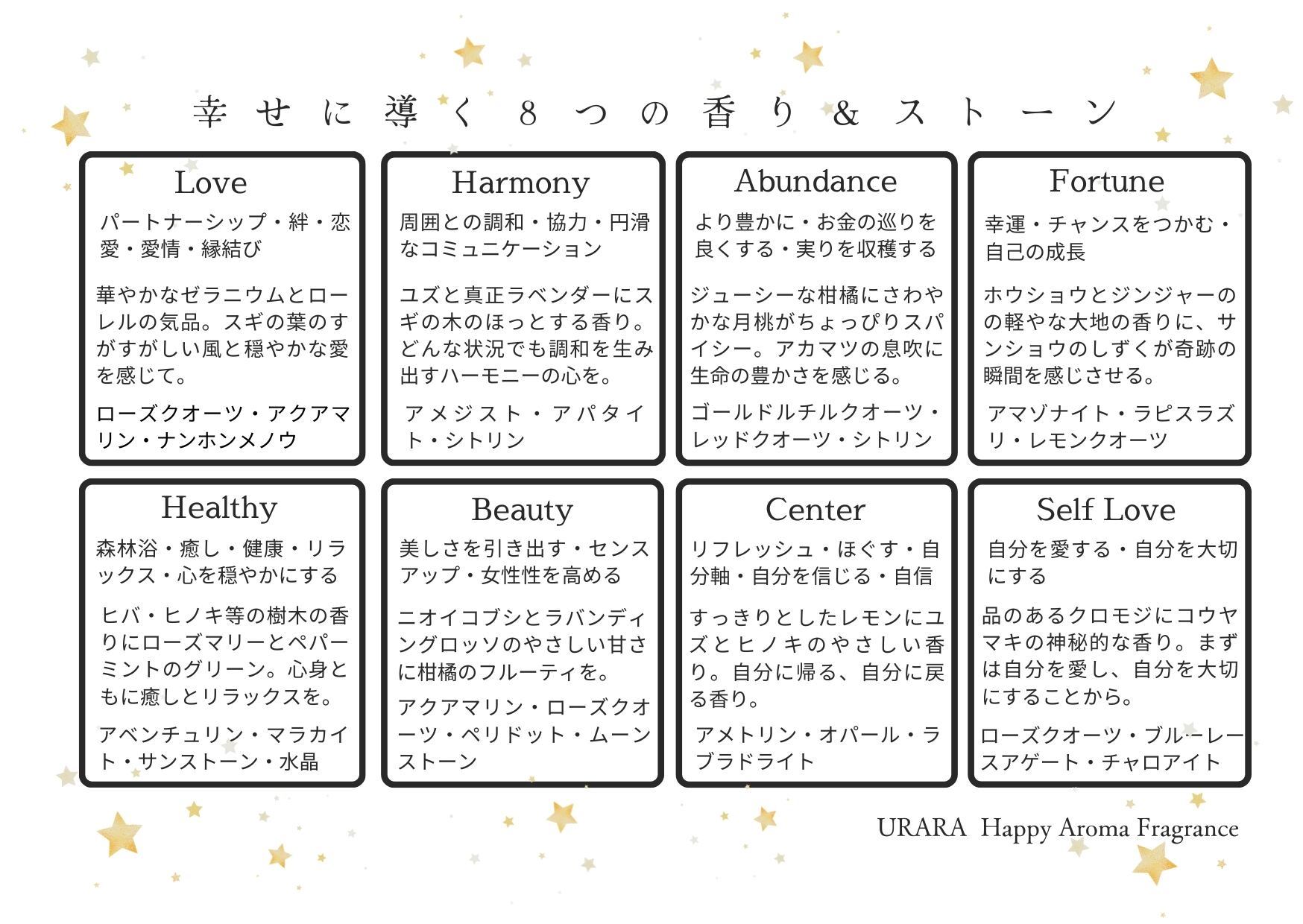 『幸せに導く8つの香り&ストーン』をラインナップ。